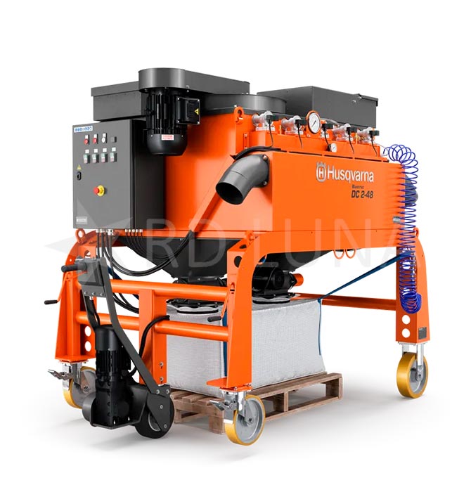 El aspirador DC 2-48 de Husqvarna está diseñado para trabajos de preparación de superficies, especialmente en hormigón y asfalto. Está pensado para acompañar a la Granalladora 2-48DS y gestionar de forma eficiente el polvo y los residuos generados durante el proceso de granallado.