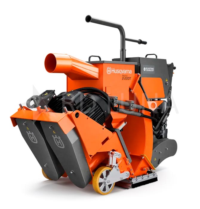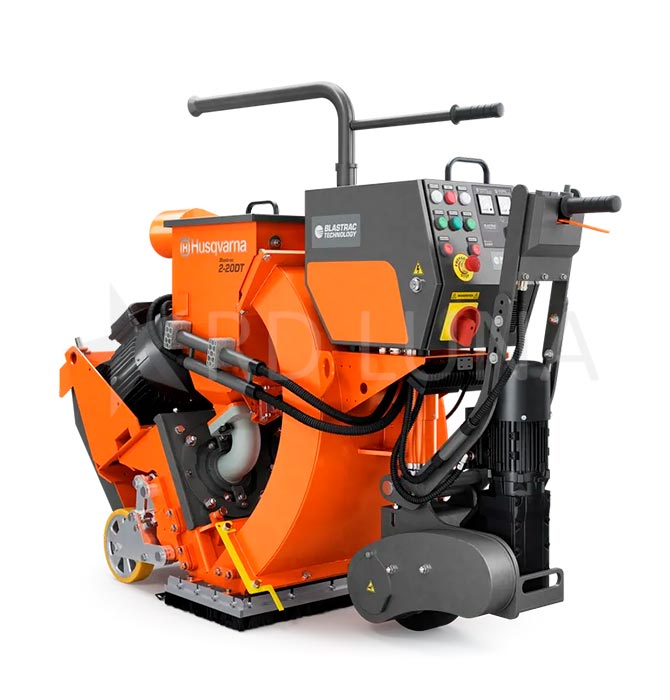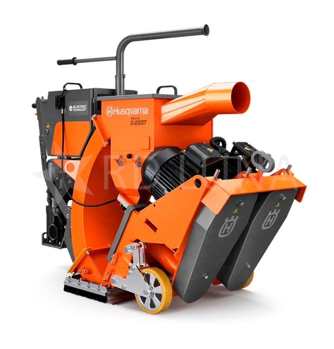 La granalladora de suelos 2-20DT de Husqvarna es una máquina de gran tamaño, diseñada específicamente para preparar pavimentos de manera eficiente. Este equipo utiliza bolas de granalla para decapar la superficie, mientras que el aspirador acoplado se encarga de mantener el área limpia y lista para la aplicación directa de productos como pinturas o resinas. Además, permite trabajar con distintos tipos de granalla para ajustar la profundidad del tratamiento según el acabado que se desee lograr.