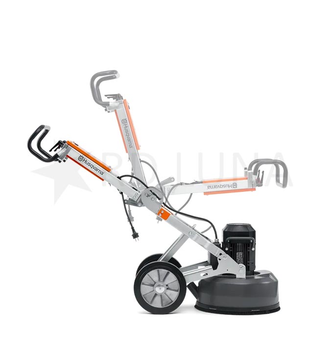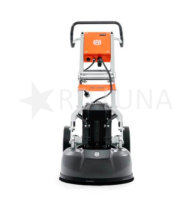 La pulidora de hormigón Husqvarna PG 450 es una máquina ideal para realizar el desbaste de pavimentos en superficies de tamaño mediano y grande. Este modelo está equipado con un sistema satélite de tres platos, que consiste en un plato principal girando en un sentido, mientras los otros tres platos más pequeños giran en dirección opuesta.